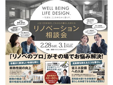 ちょっと告知ですが、1月24日(土)~ 2月1日(日)まで福井ハウジングギャラリーでの断熱リノベ相談会と、東今泉モデルでのあったかリノベ住宅体感会が同時開催でございます