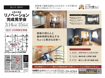 石友ホーム 富山リノベーション店石友ホーム 高岡リノベーション店石友ホーム 金沢南リノベーション店石友ホーム 福井リノベーション店
