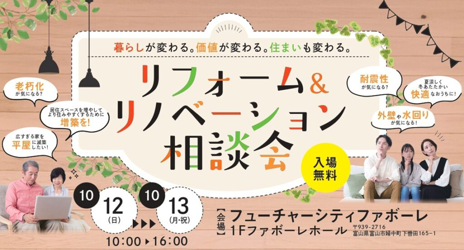 出展社:赤井建設、家とも、石友ホーム 富山リノベーション店、共栄ホームズ、さくら、ヨネモクリフォーム