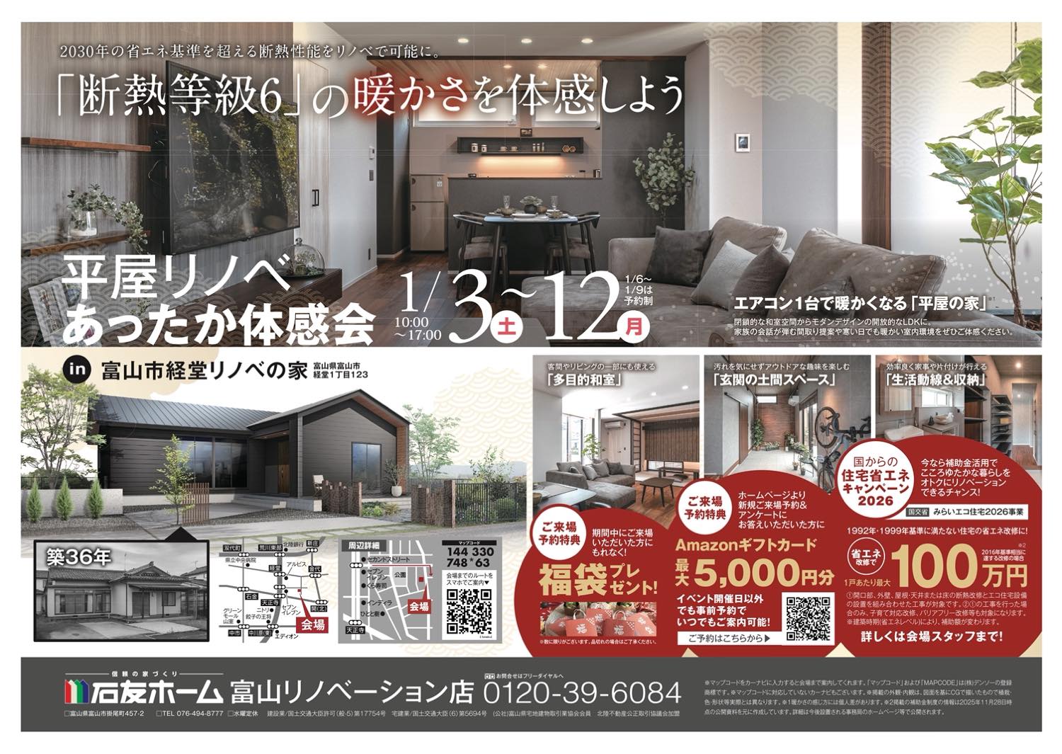 平屋リノベあったか体感会・リノベーション相談会|富山市経堂・富山ハウジングギャラリー