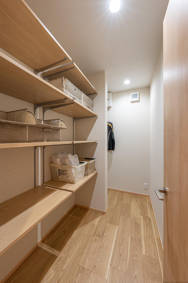 家事動線に組み込まれたファミリークロークなど各所に収納を設けました。収納に困ることなく家族全員の荷物をしまうことができ、簡単にスッキリキレイを叶えます。