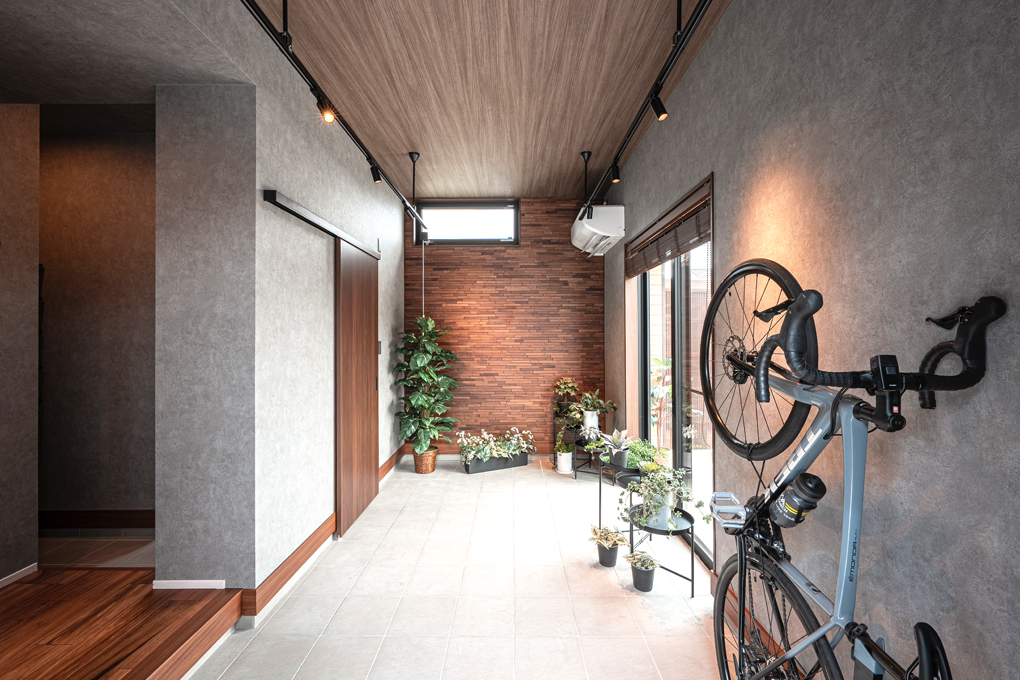 豊富な収納と広い土間空間が特徴の玄関。土間なら土や汚れが気になる作業も気兼ねなくできて、後片付けもラクに行えます。庭とLDKへのアクセスも良く、物の持ち運びがしやすいのもこの玄関のポイントです。