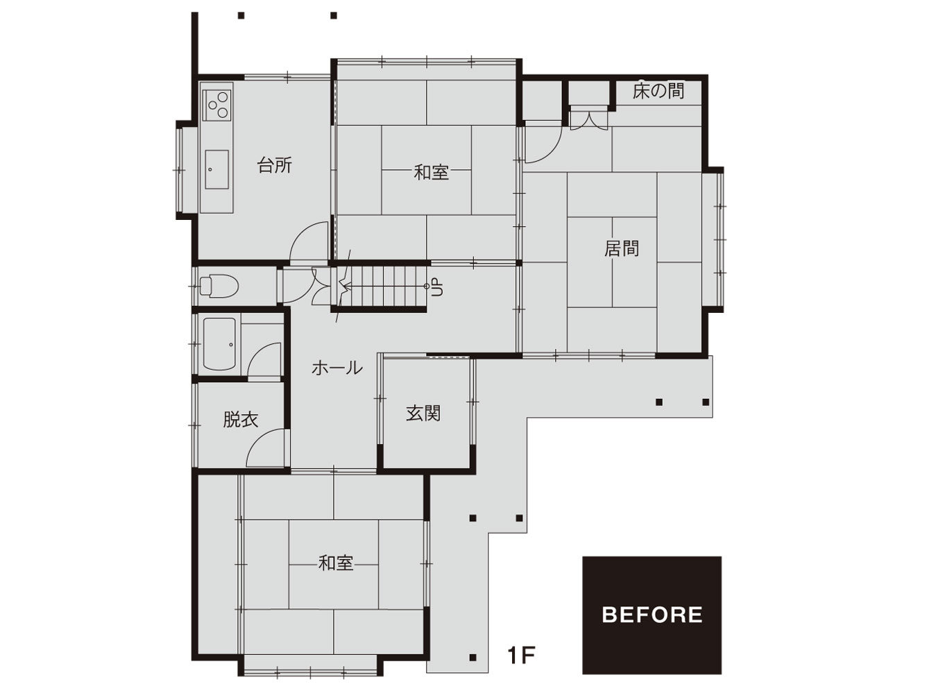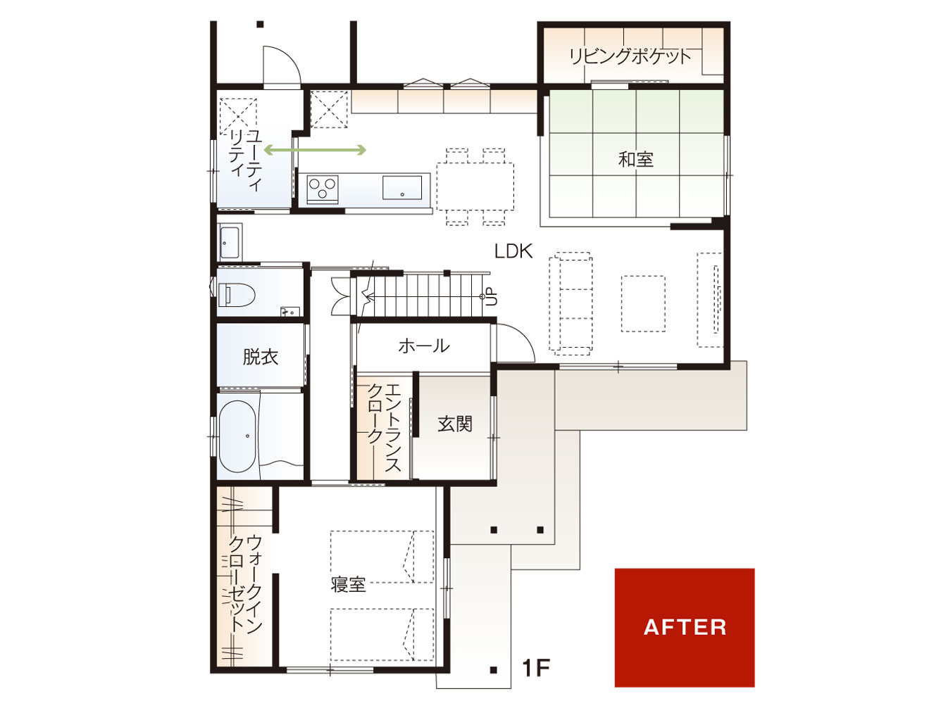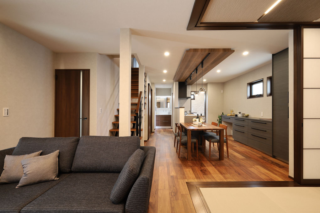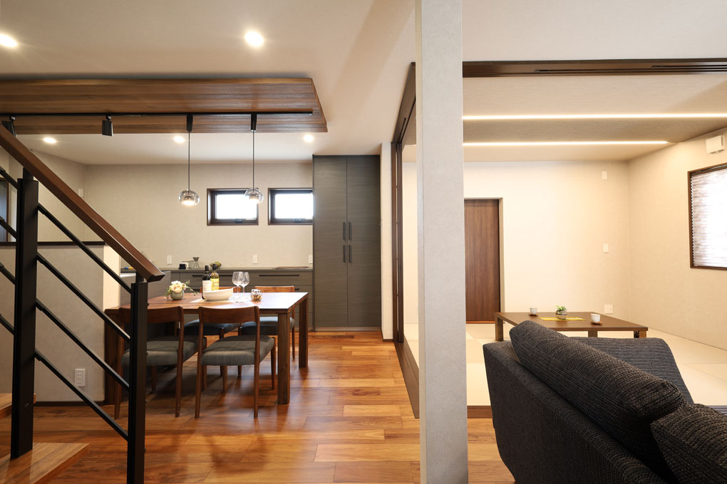 築43年。子世帯家族と同居するには、使い勝手の悪い間取り、十分に集まれるスペースがないことにお悩みでした。 LDKは、仕切りを取り払い、三世代家族がストレスなくくつろげる開放的な空間に。 暮らしに合わせて多様に使えるLDK内の和室は、横になって読書を楽しんだり、宿泊用の場所として使ったり・・・あると便利な+αの空間です。